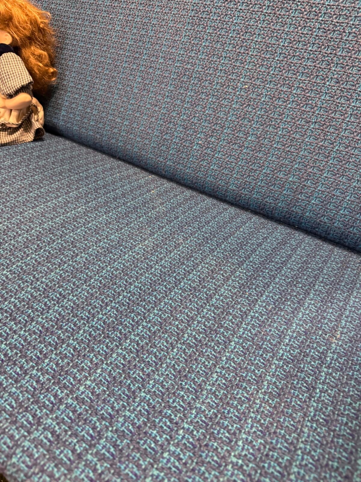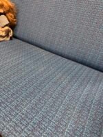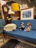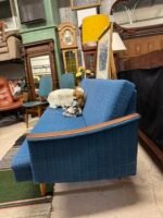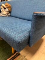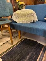 Antikvarinė kanapa melynu veliūriniu gobelenu