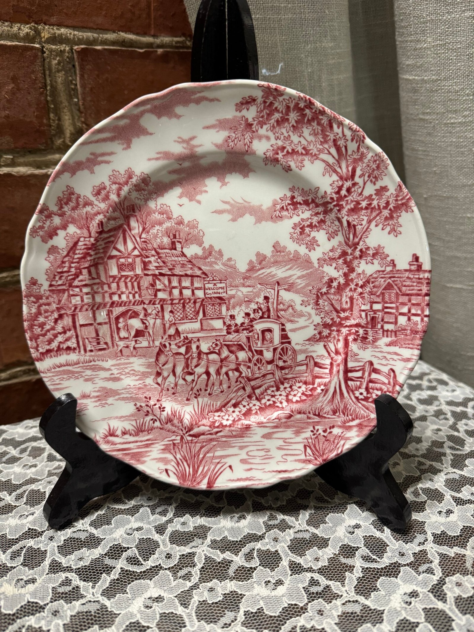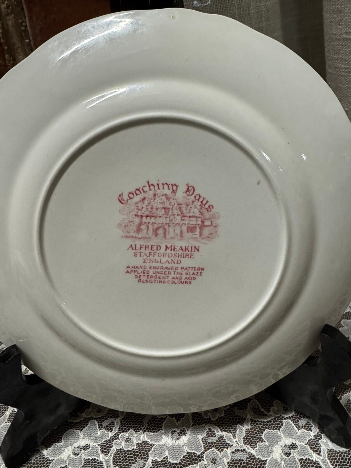 Anglų gamintojo rausvo dekoro serviravimo lėkštė