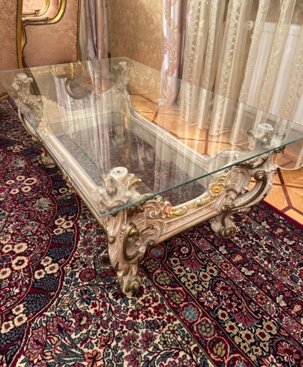 Prabangus silik svetainės staliukas stikliniu paviršiumi