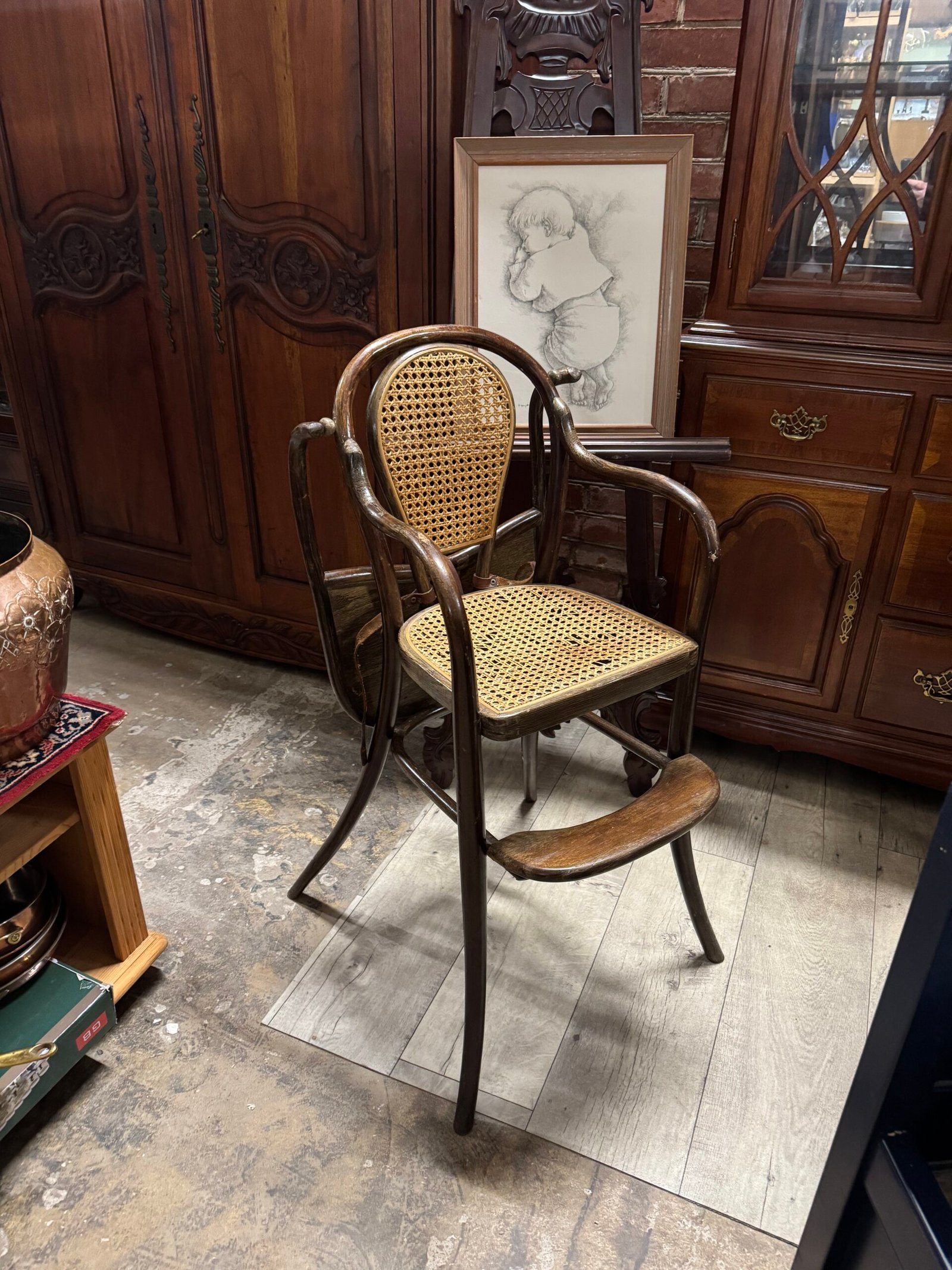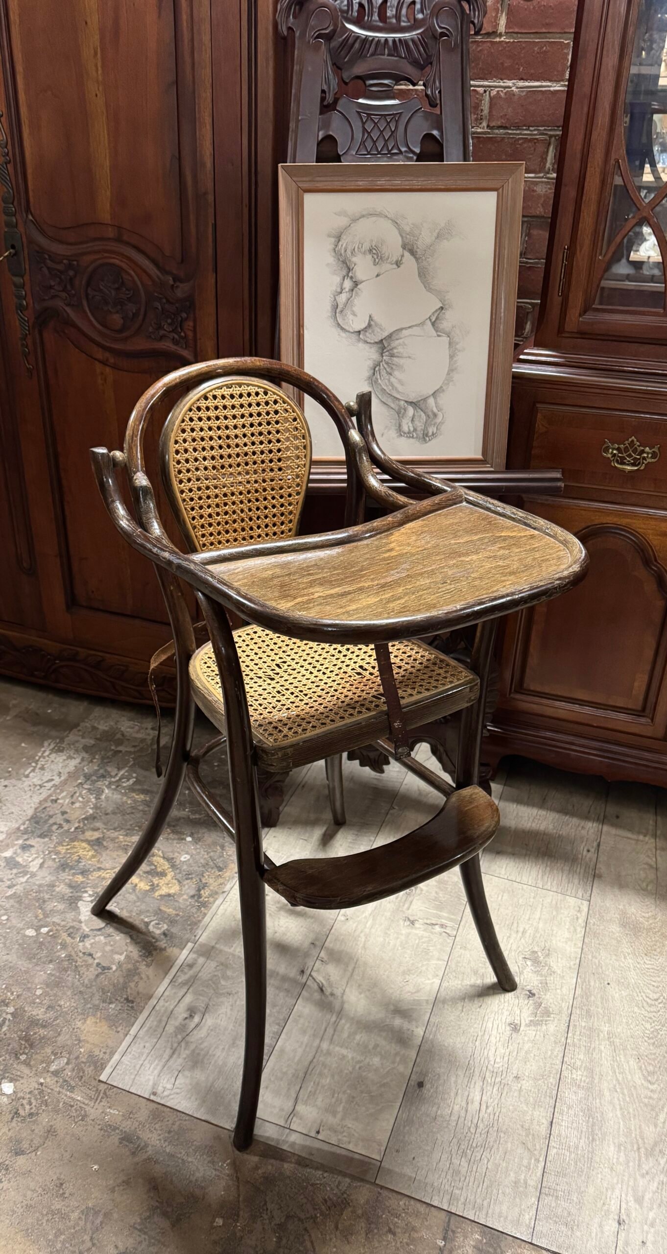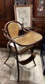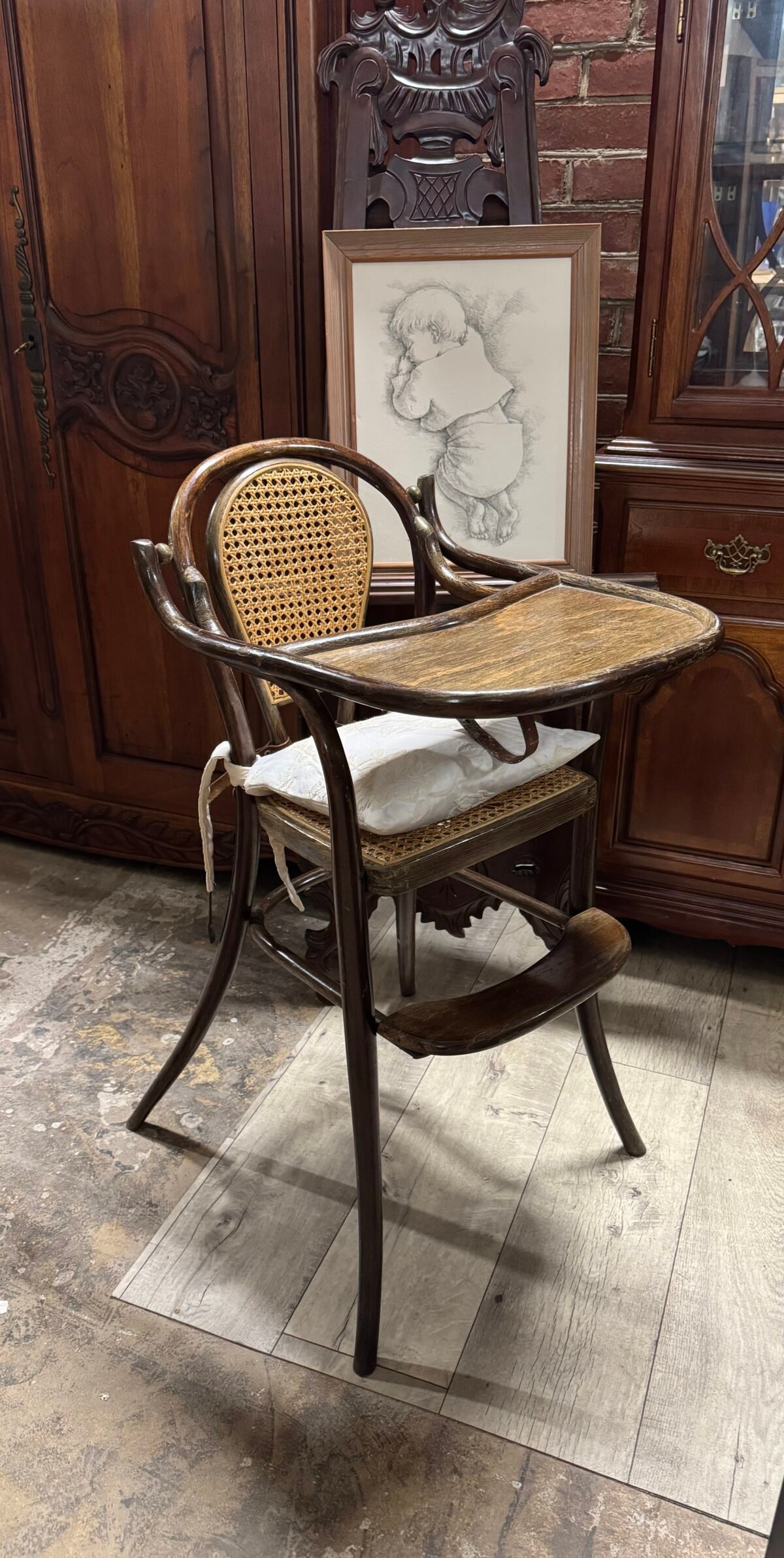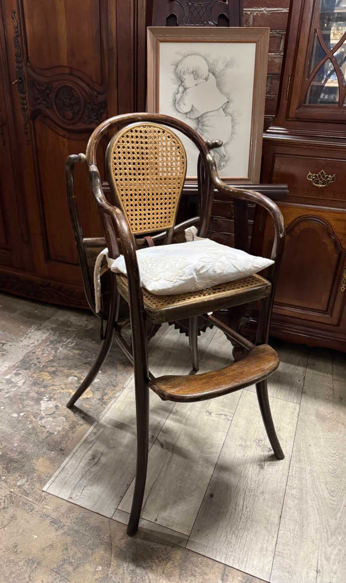 Antikvarinė kūdikio maitinimo kėdutė su ratano dekoru