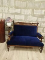 Antikvarinė kanapa melynu veliūriniu gobelenu
