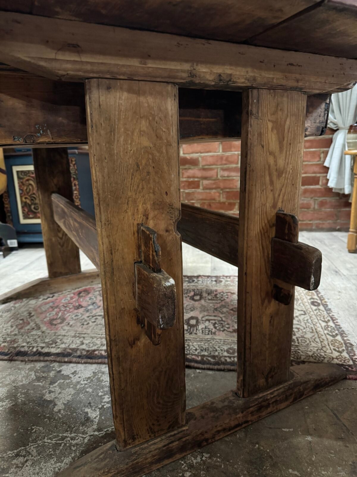 Antikvarinis valgomojo stalas sunertas mediniais kaisčiais