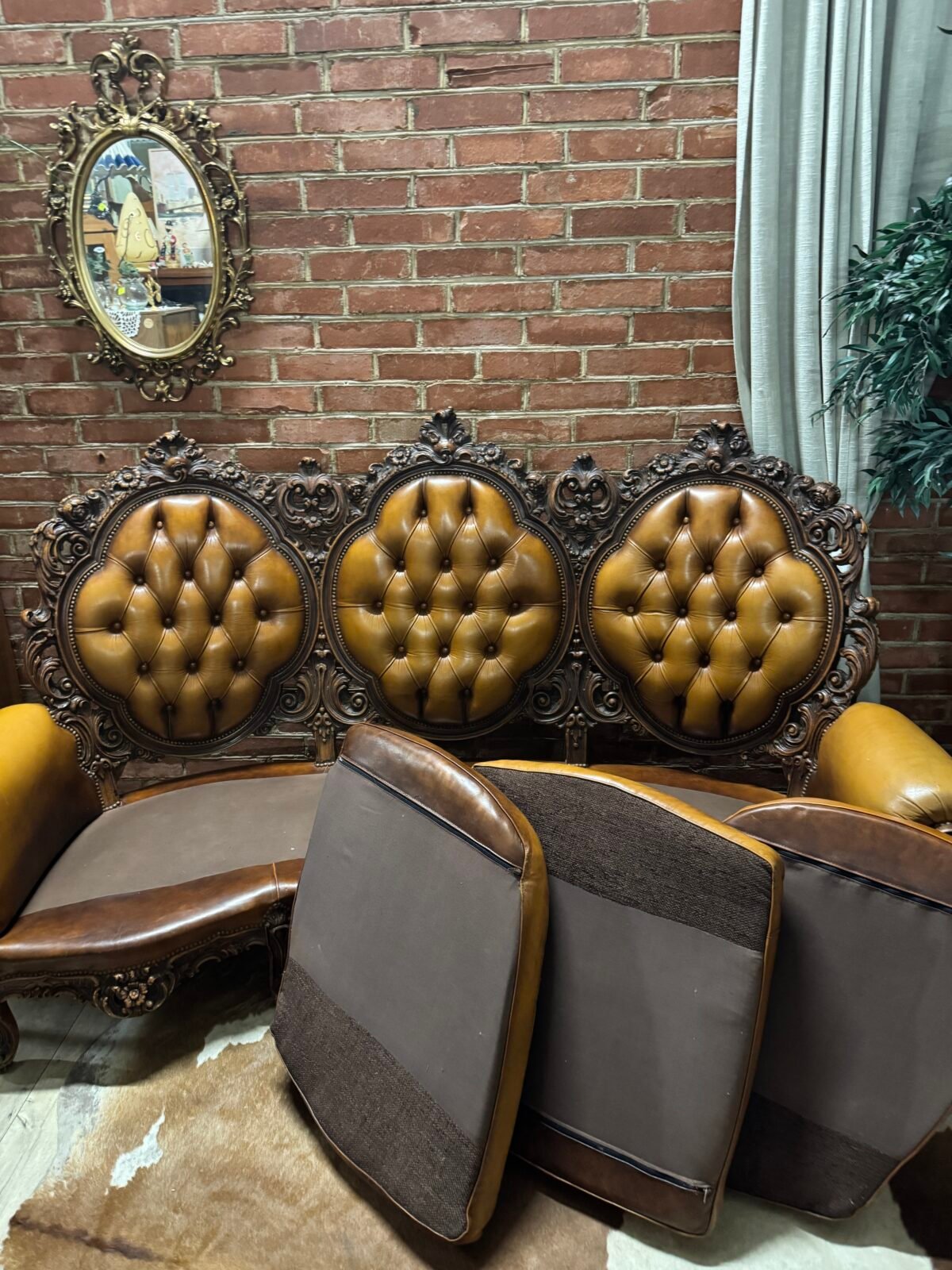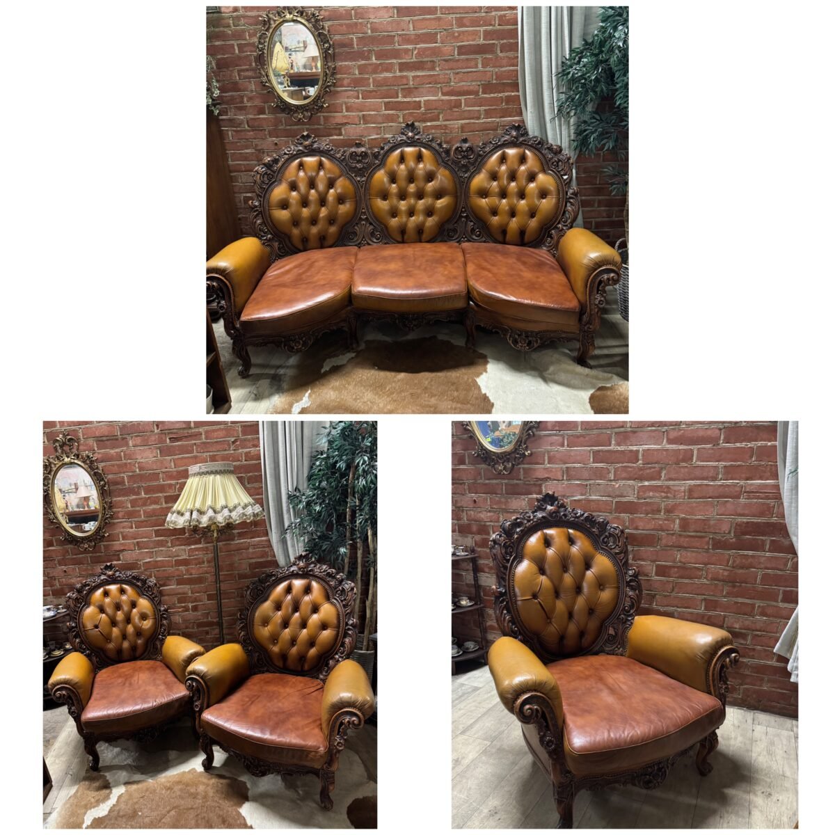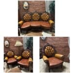Didingas odinis svetainės komplektas 3-1-1 giliais drožiniais