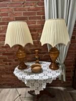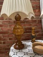 Vienas šviestuvas medine koja ir medžiaginiu gaubtu