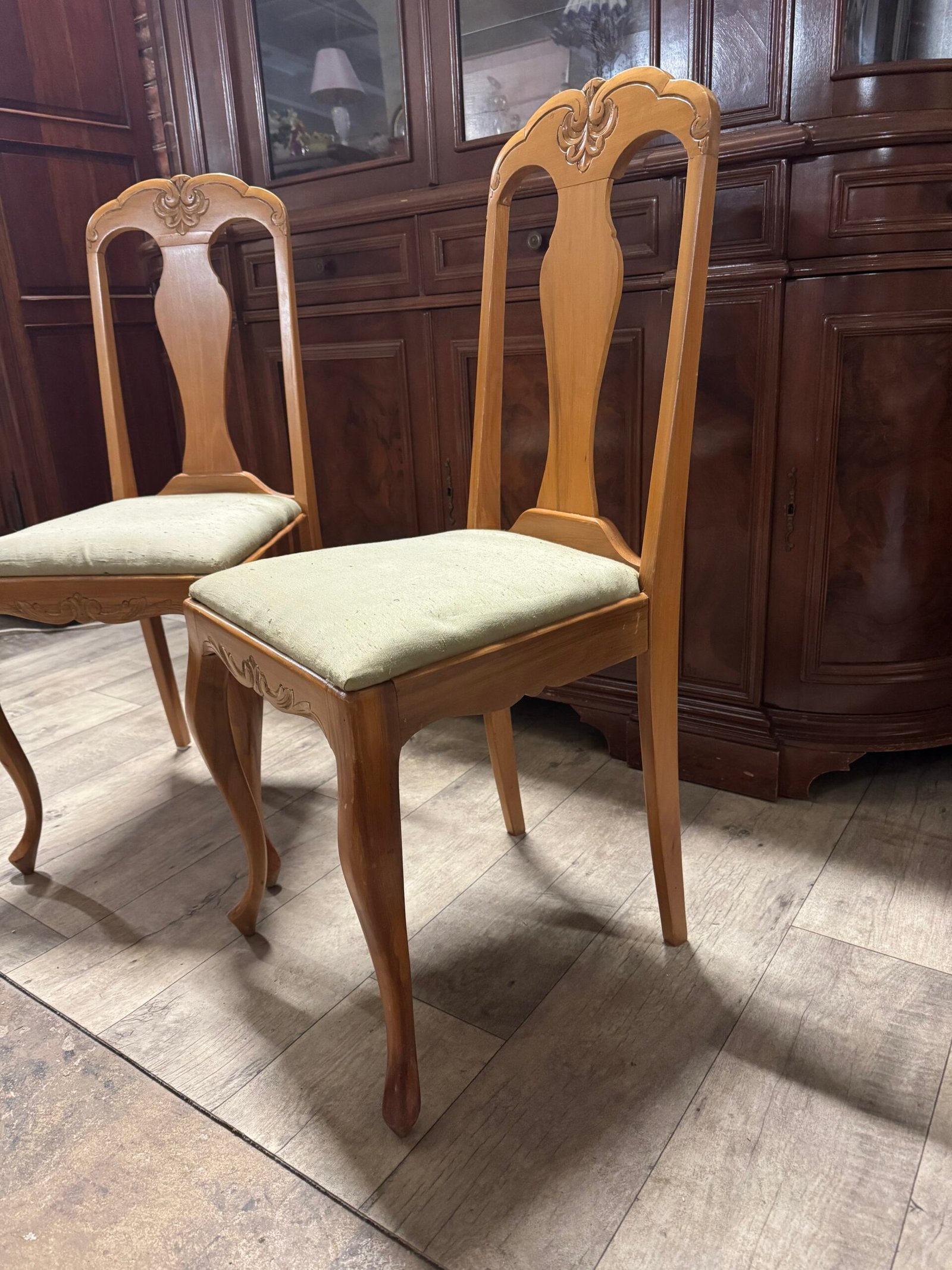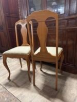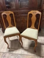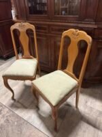 Dvi medinės kėdės medžiaginiu gobelenu