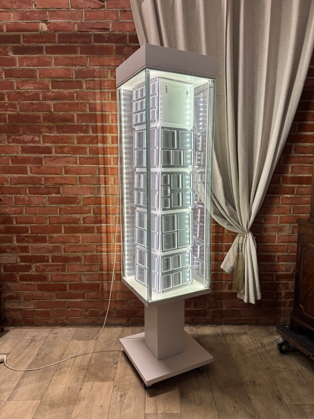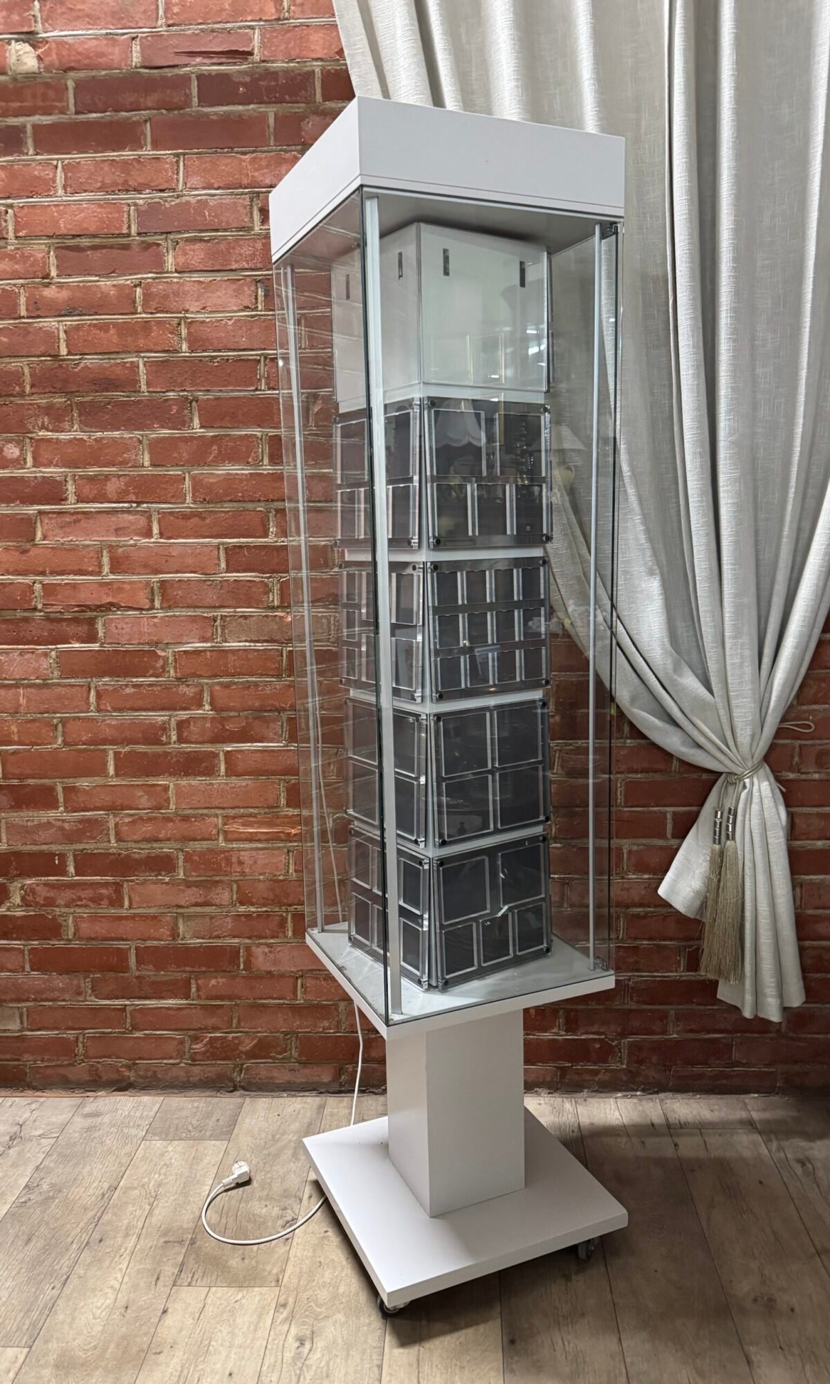 Ekspozicinė šviečianti ir besisukanti reklaminė vitrina