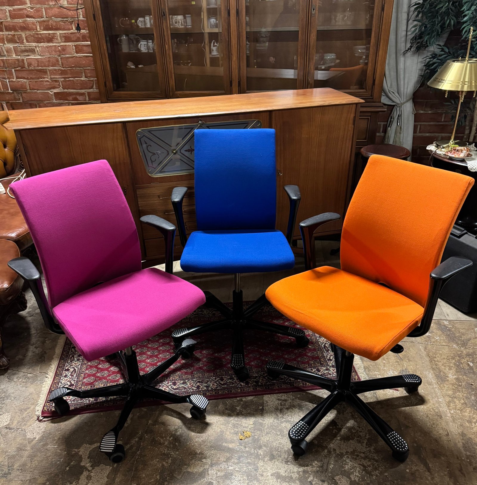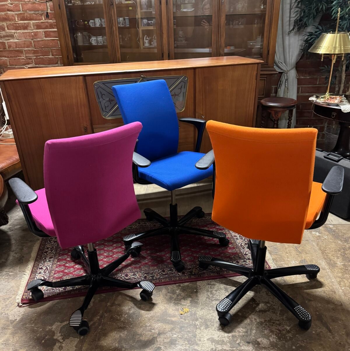 Ergonomiškos biuro kėdės spalvingu gobelenu