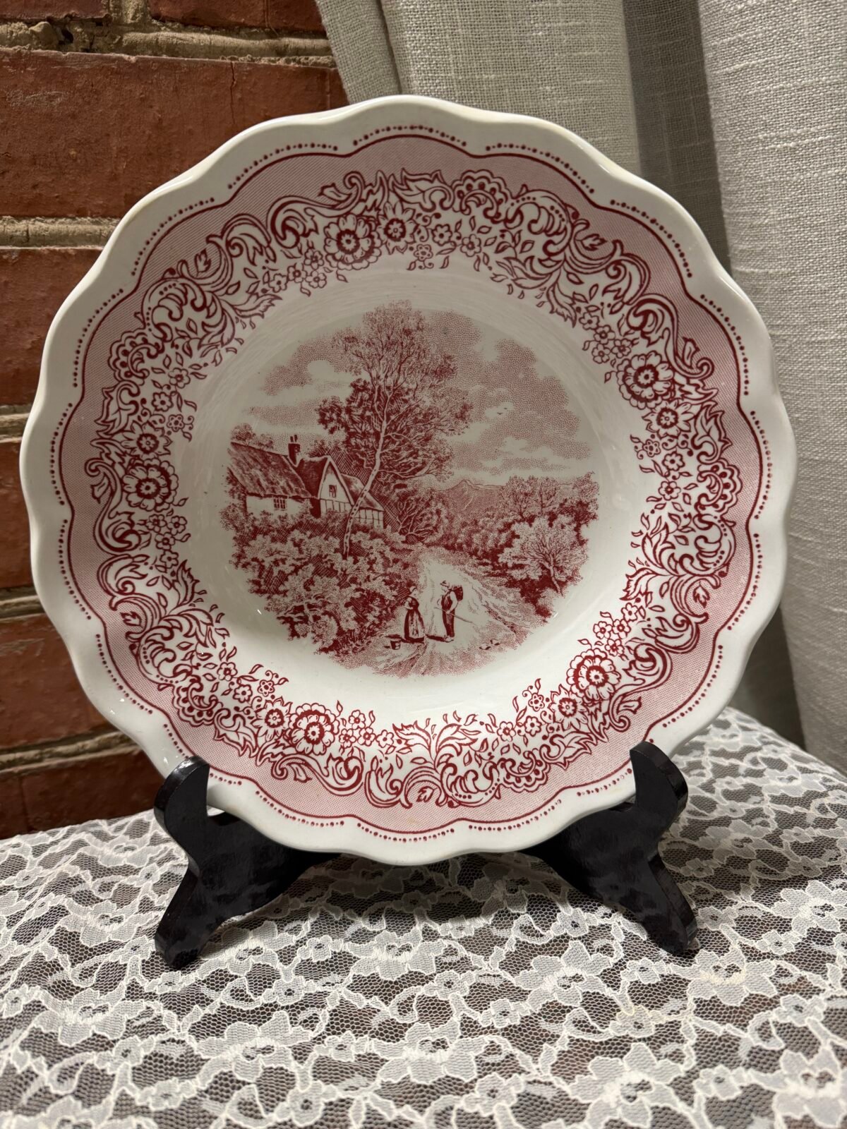 Italų gamintojo sriubinė lėkštė raudonu dekoru