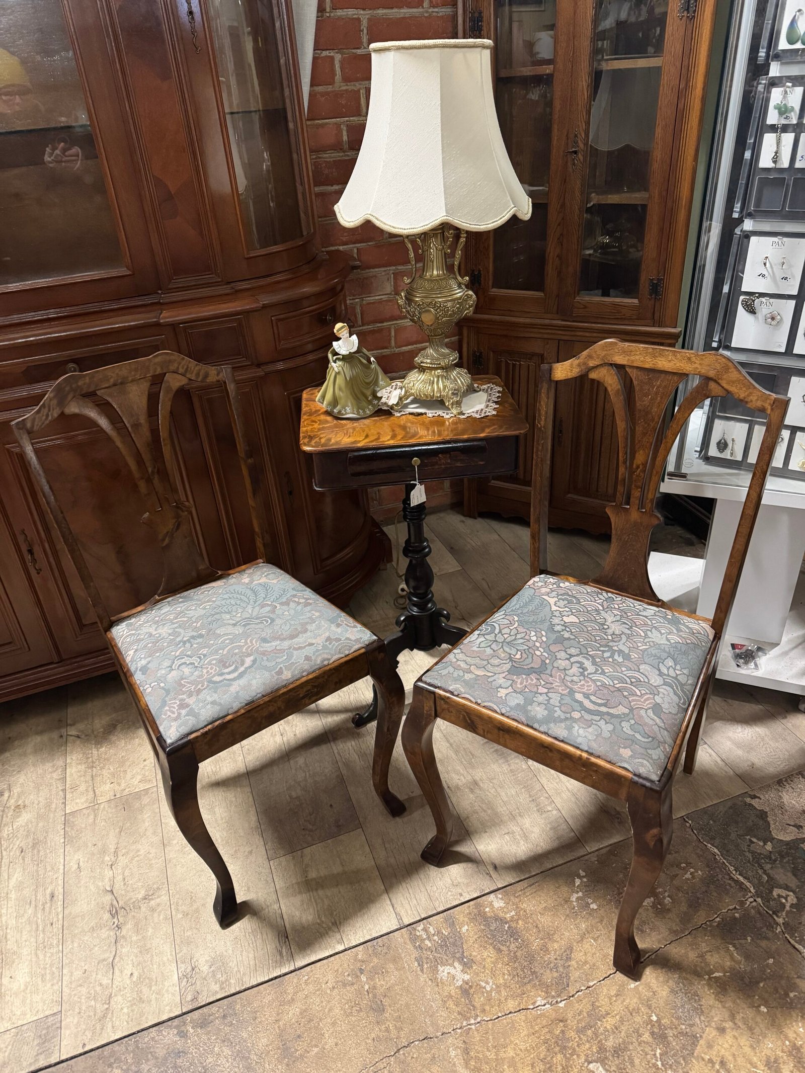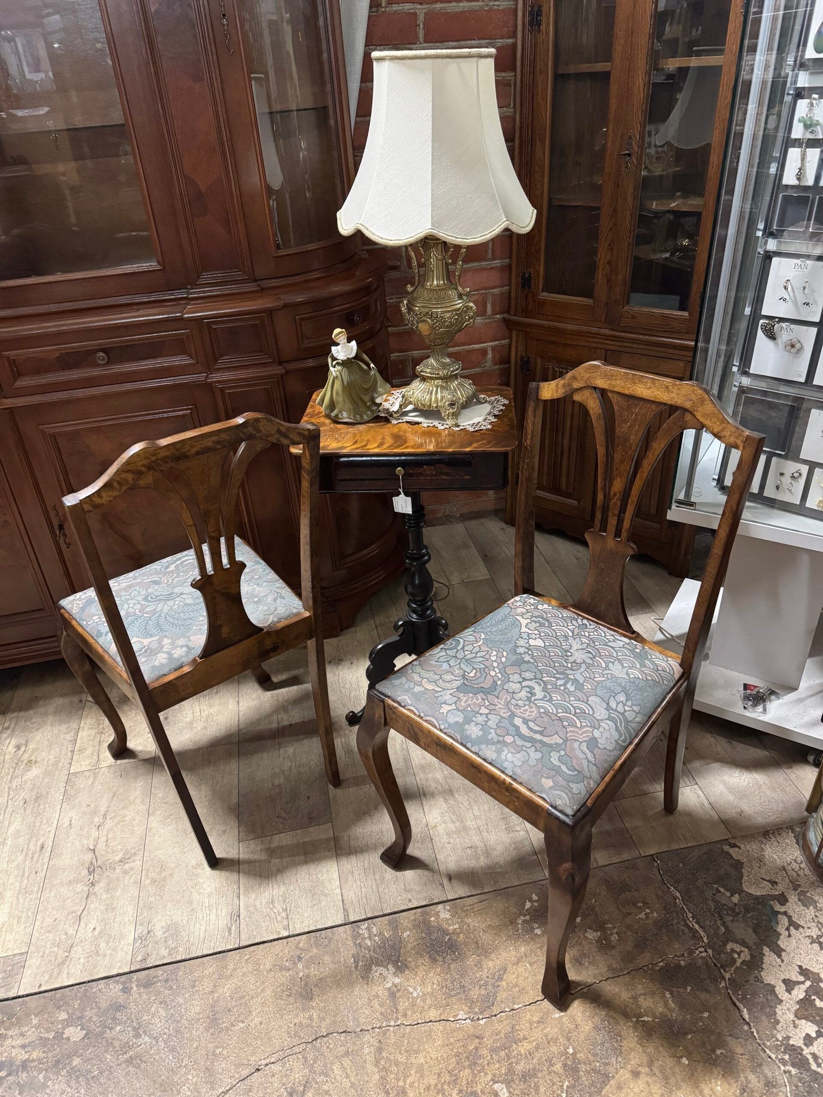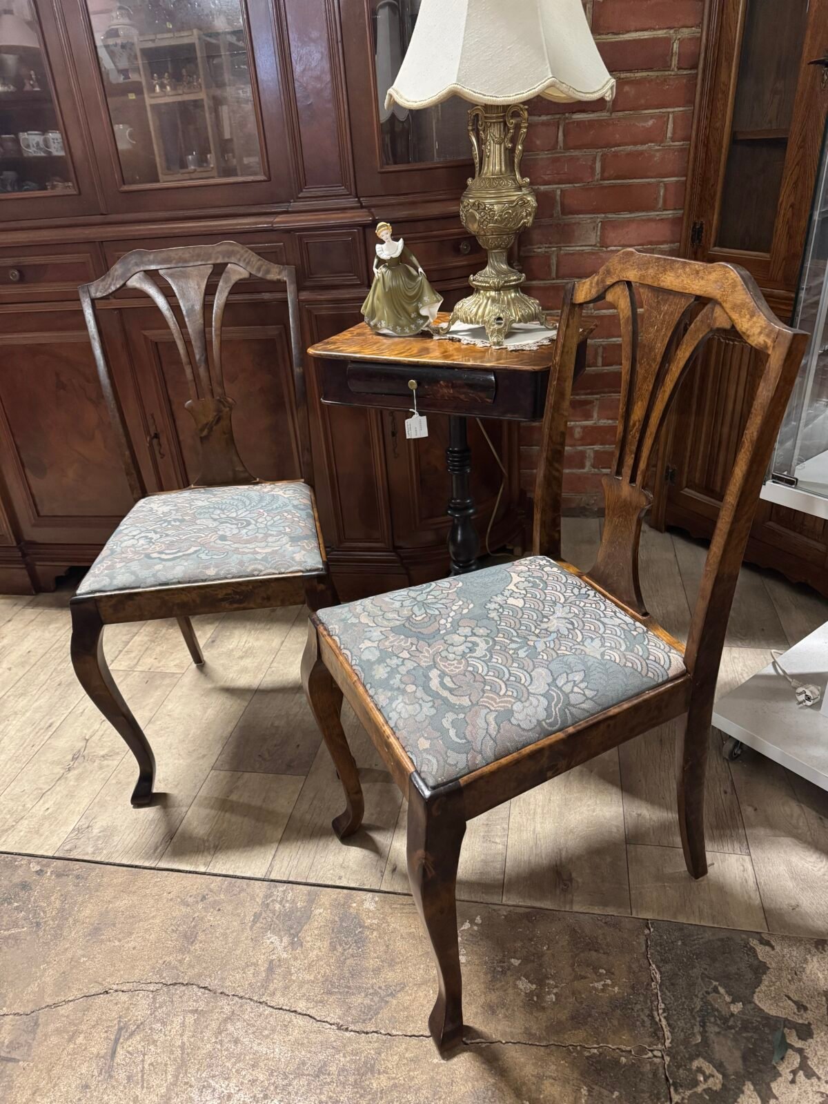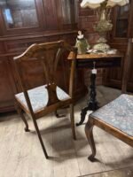 Keturios antikvarinės medinės kėdės medžiaginiu gobelenu