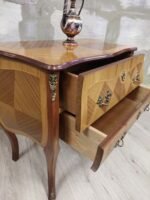 Sienelė jungianti dvi vitrinas su inkrustacijomis į kurią galima įstatyti tiek miegamą lovą,tiek kanapą