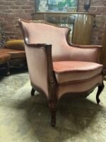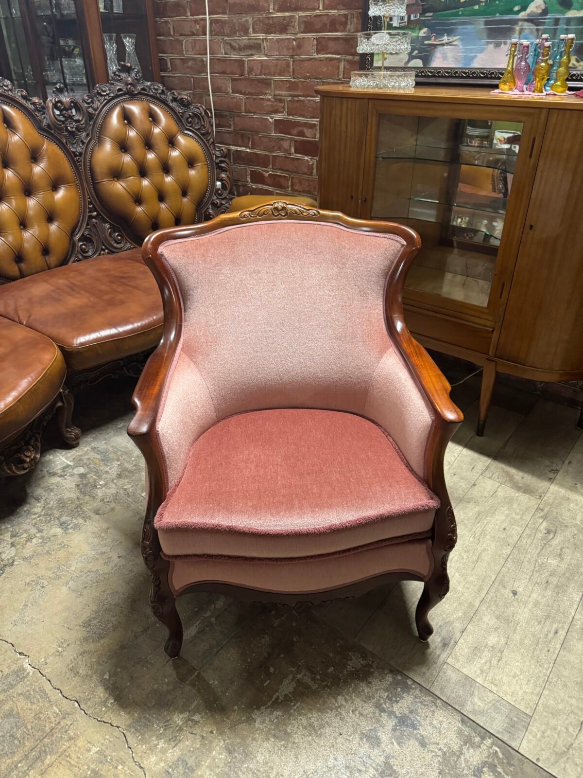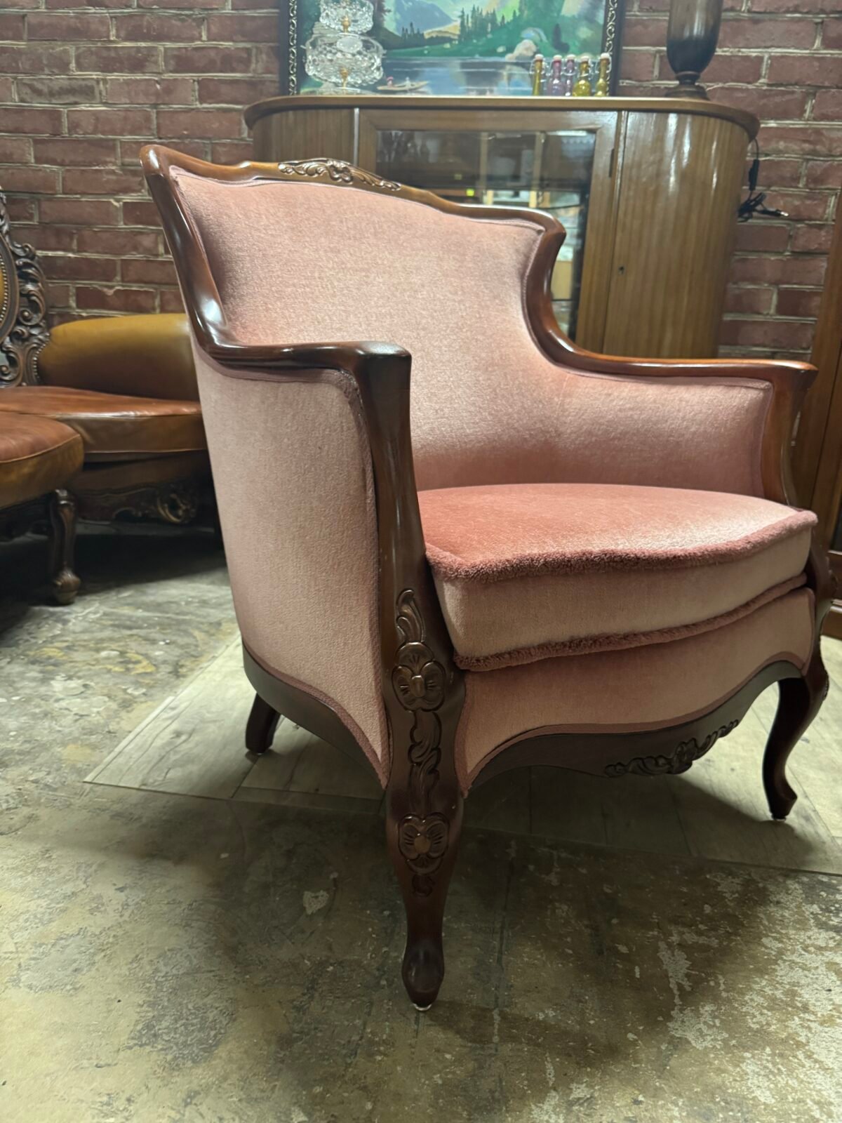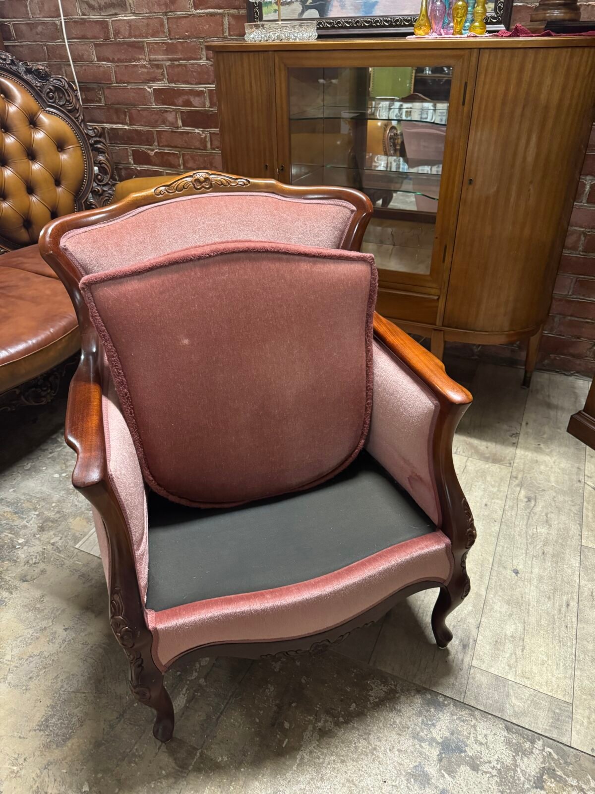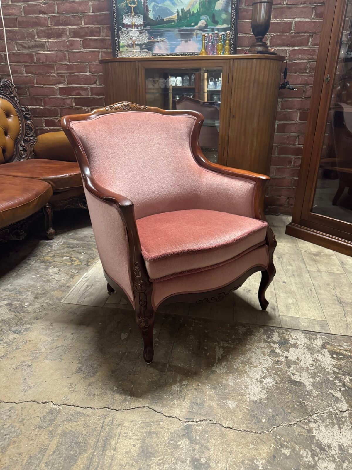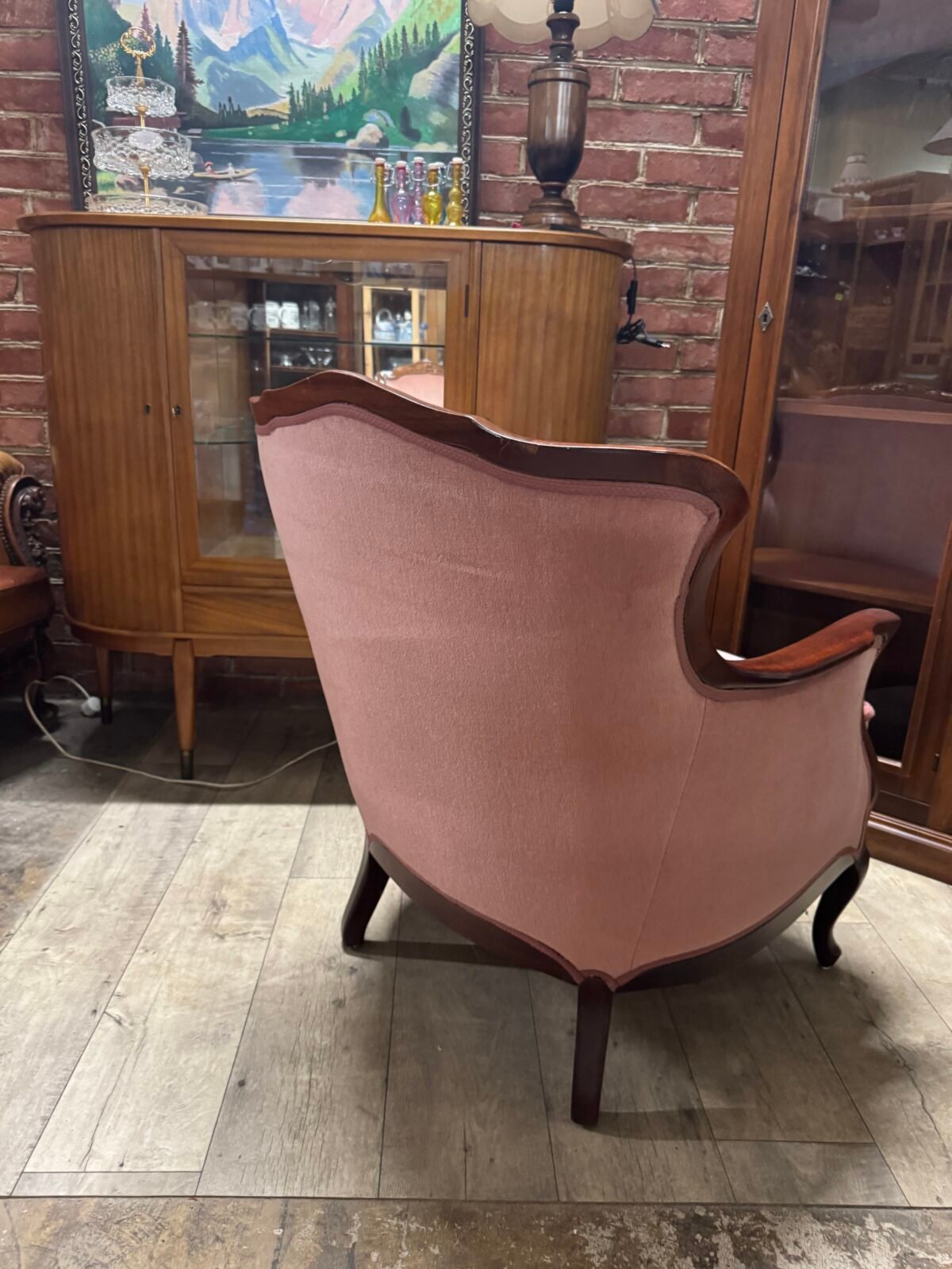 Krėslas avietinės spalvos veliūriniu gobelenu