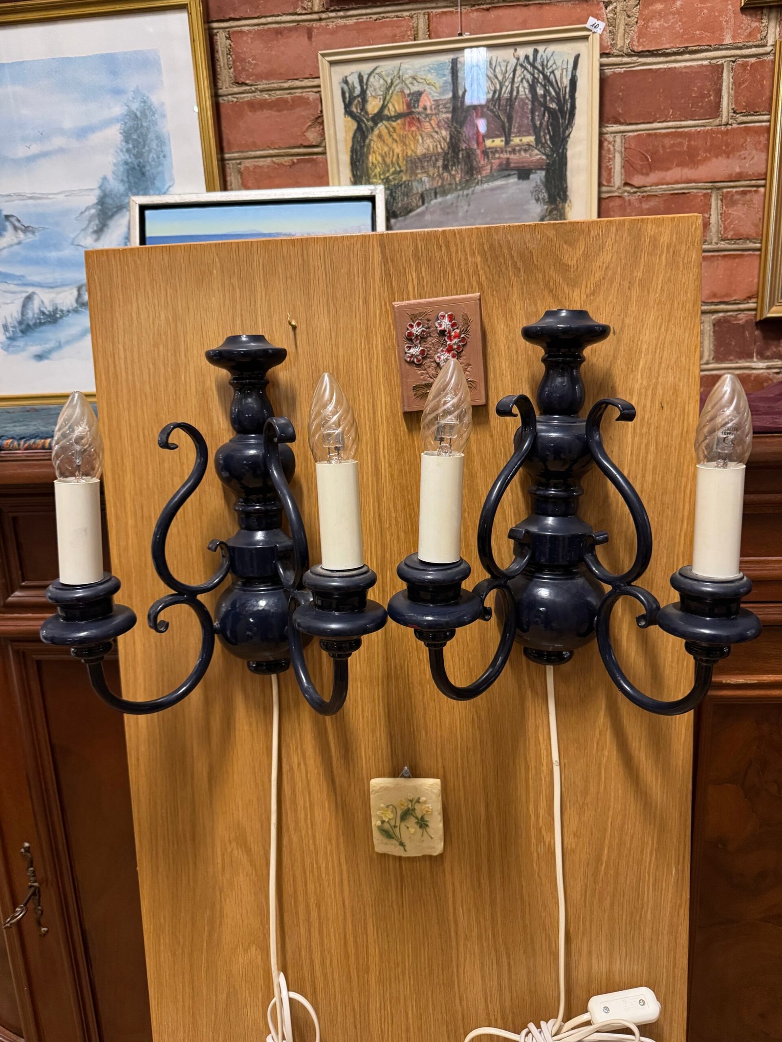 Mediniai sieniniai šviestuvai tamsiai mėlynos spalvos