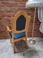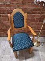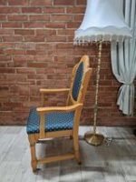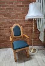 Medinis krėslas tamsiai žalios spalvos šilkiniu gobelenu