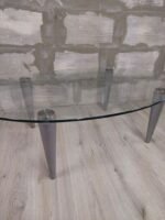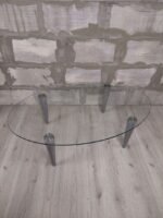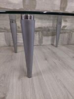 Modernus ovalo formos svetainės staliukas medinėmis sidabro spalvos dažytomis kojomi