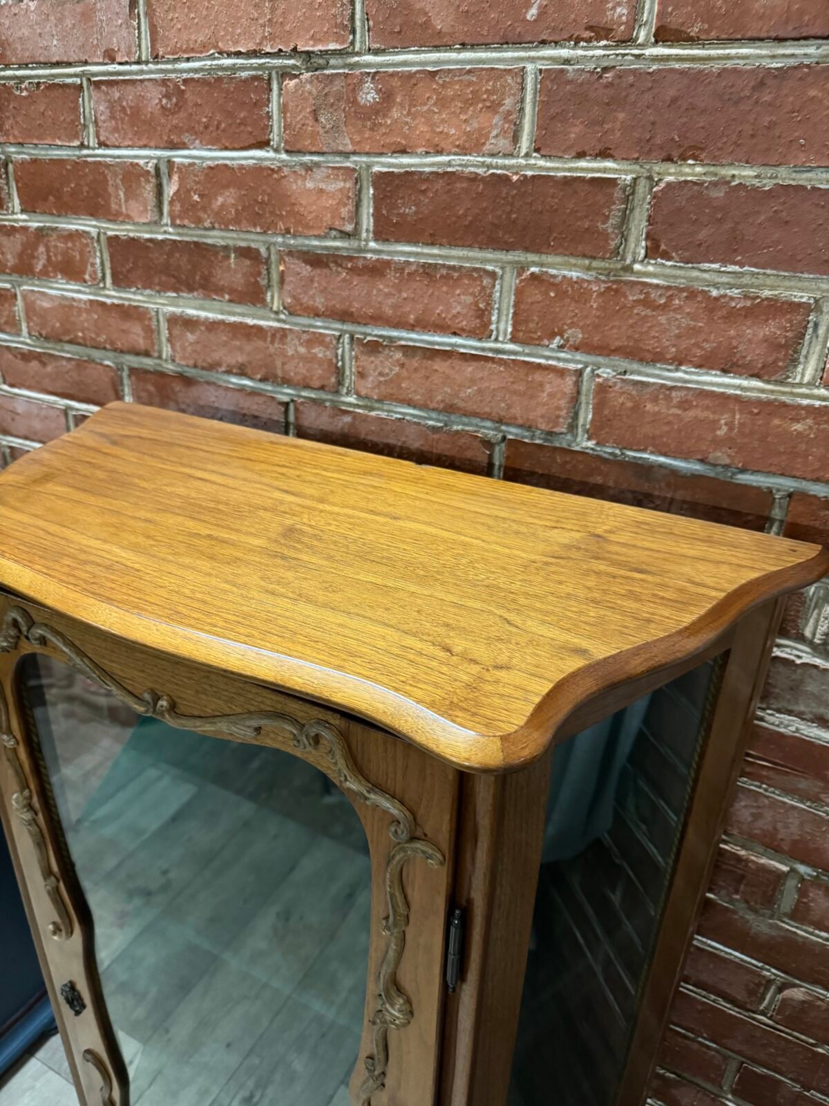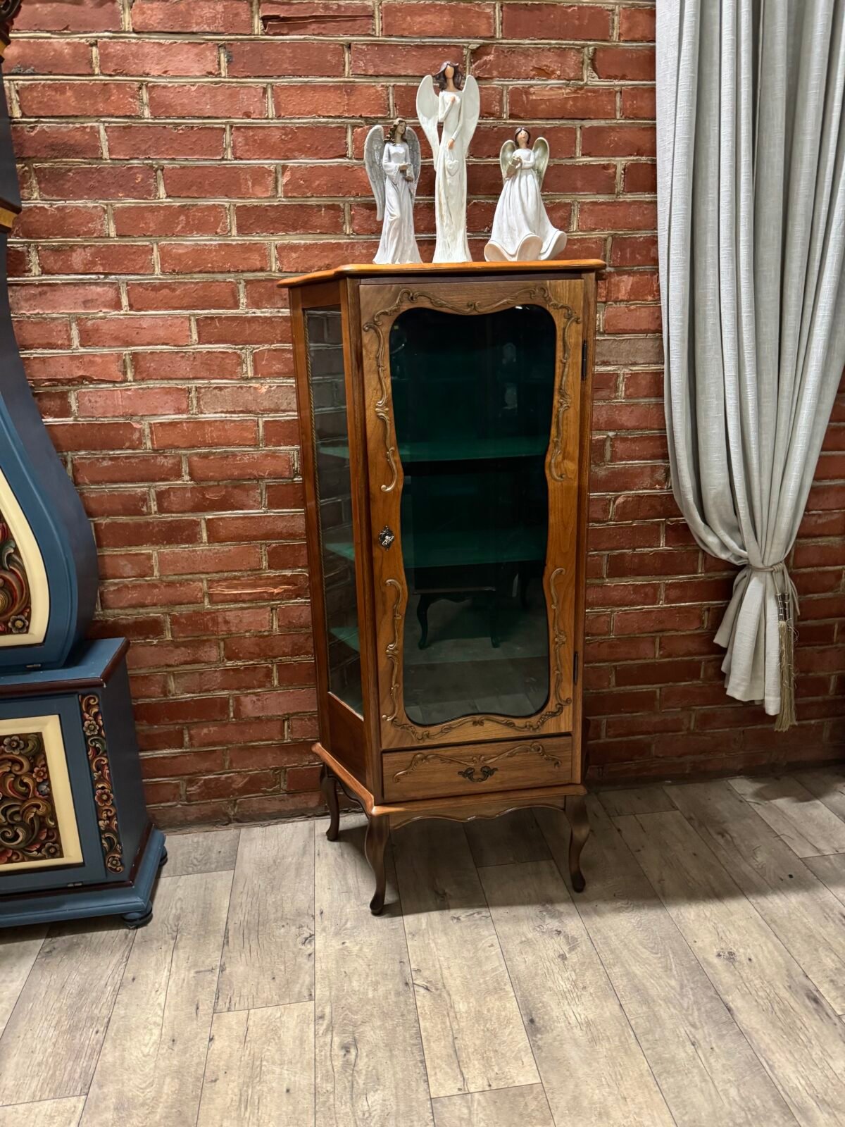 Daili porceliano vitrina su vario detalėmis ir inchrustacijomis