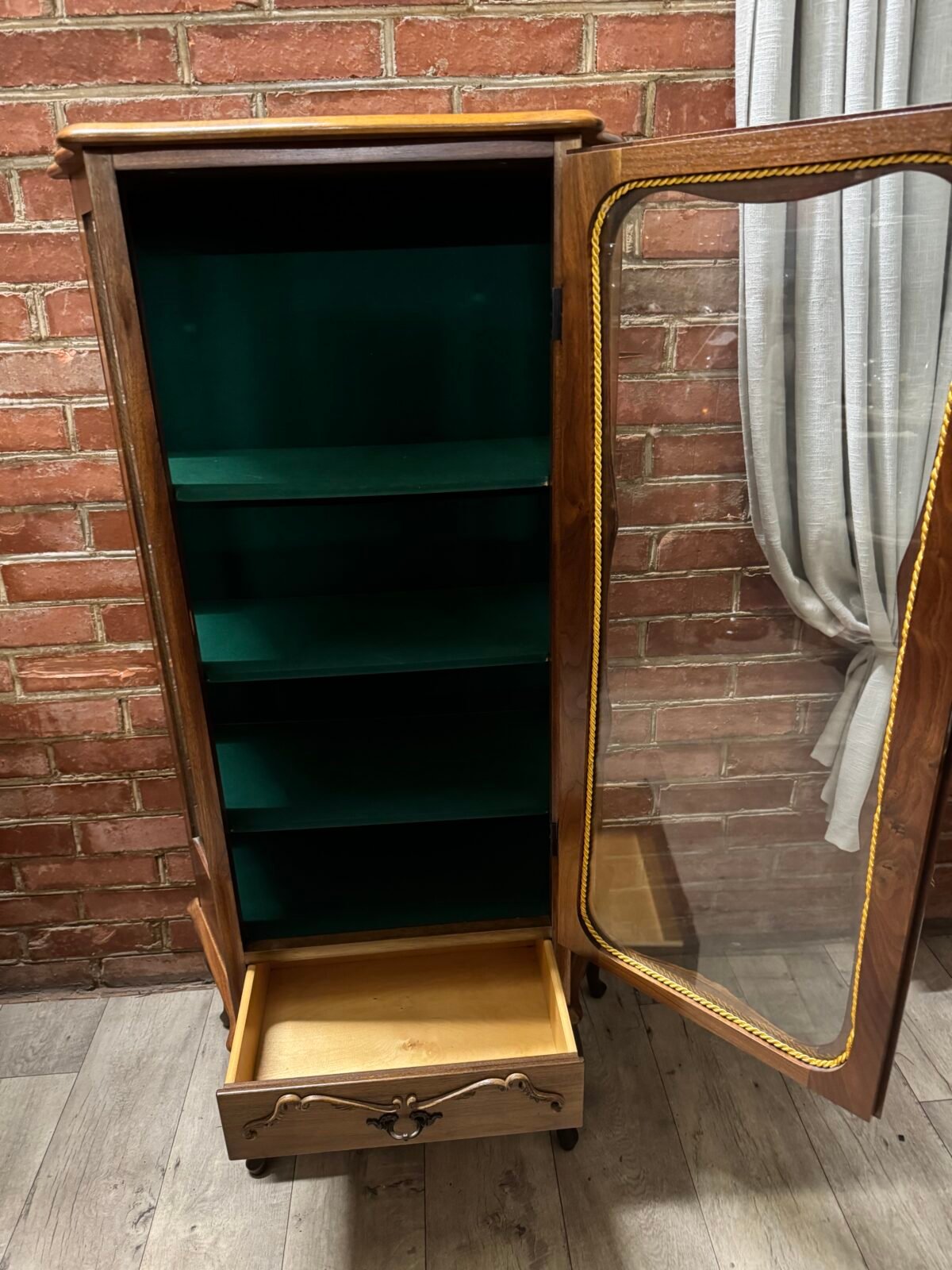 Sienelė jungianti dvi vitrinas su inkrustacijomis į kurią galima įstatyti tiek miegamą lovą,tiek kanapą