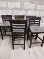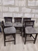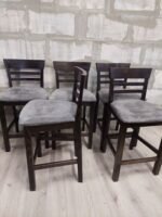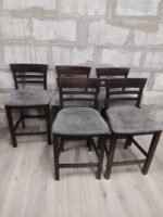 Senovinės mediniu su ornamentu rėmu ir medžiaginiu tvarkingu gobelenu kėdės