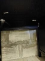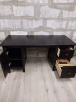 Senovinis ąžuolinis dviejų pusių darbo stalas su prailginimais.