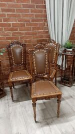 Senovinės dailios kėdės odiniu gobelenu