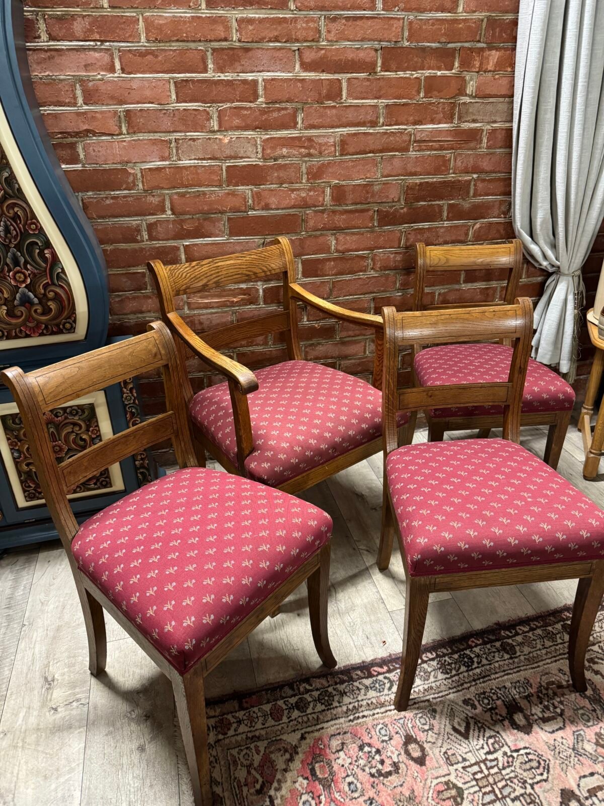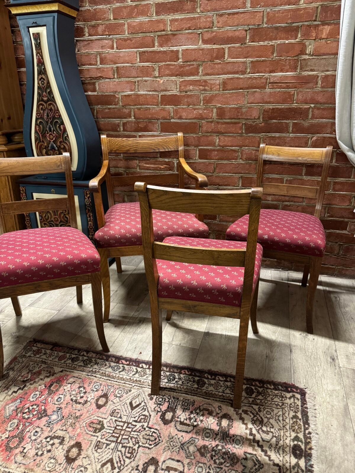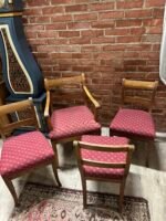 senovinės tvirtos kėdės medžiaginiu gobelenu