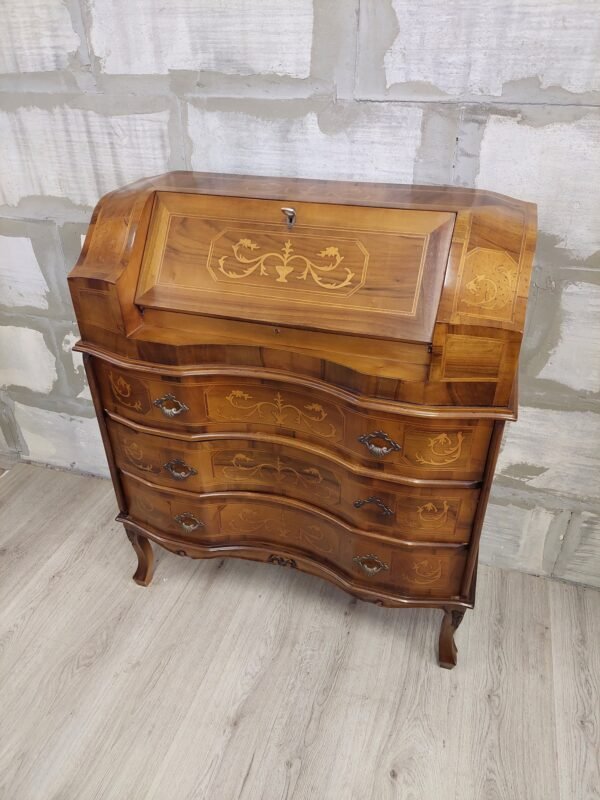 Senovinis, ąžuolinis sekreteras su riestom kojom, užsirakinamas