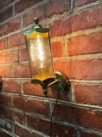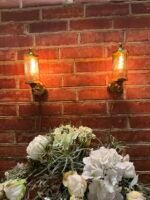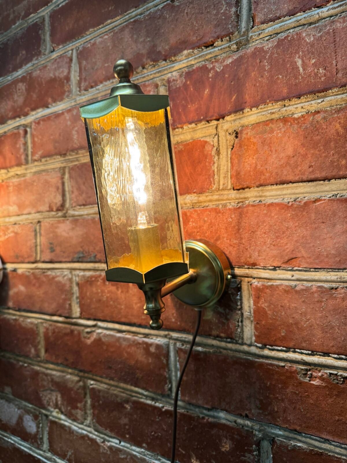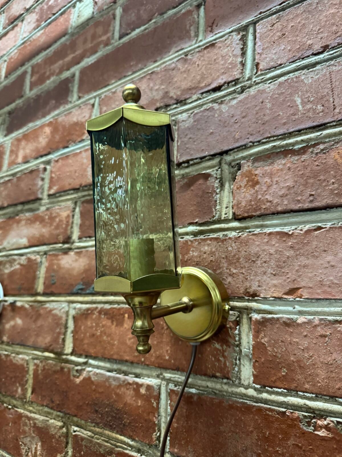 Sieniniai šviestuvai metaliniu rėmu ir žalsvos spalvos stiklo gaubtu