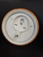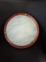 Sieninis šviestuvas stikliniu gaubtu ir mediniu rėmu