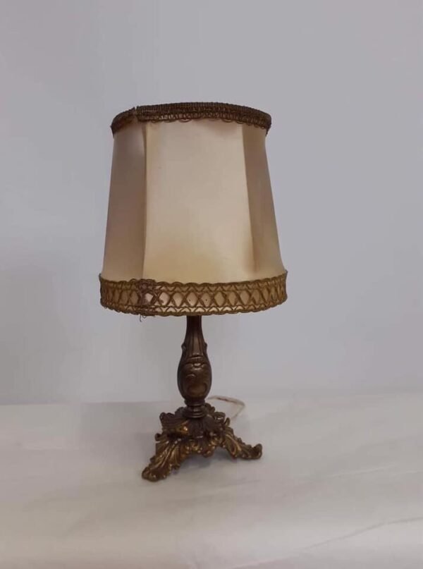Varinė, dailia koja stalinė lempa su dailiu gaubtu