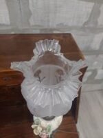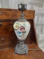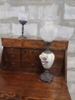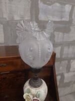Stalinis šviestuvas keramikine su vario detalėmis koja ir stikliniu gaubtu