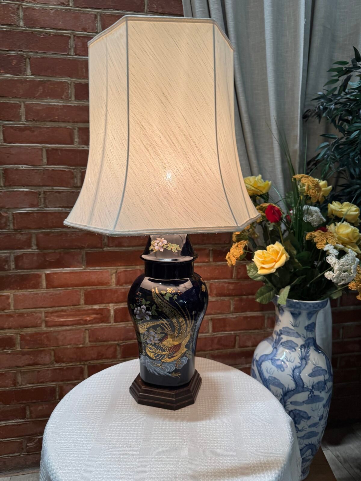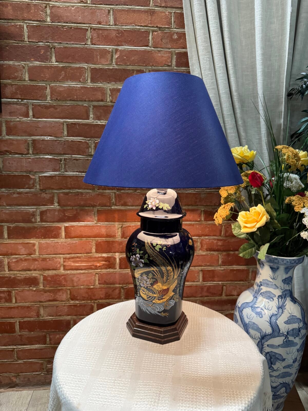 Stalinis šviestuvas porcelianine koja ir medžiaginiu gaubtu