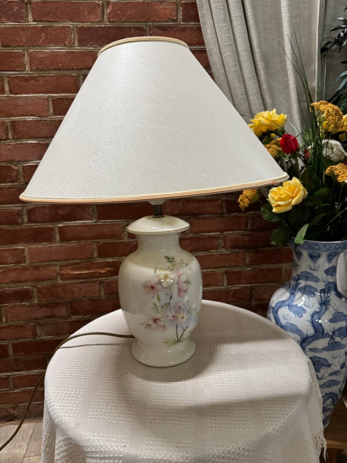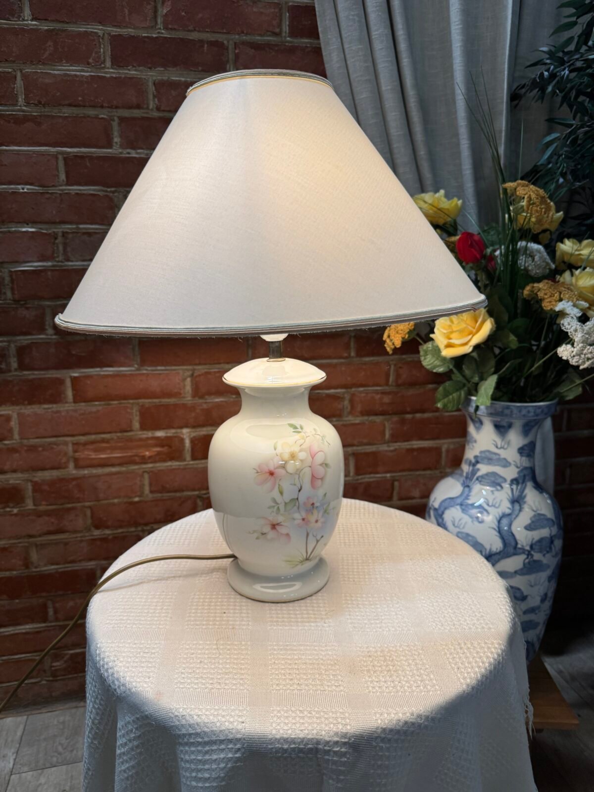 Stalinis šviestuvas porcelianine koja ir medžiaginiu gaubtu