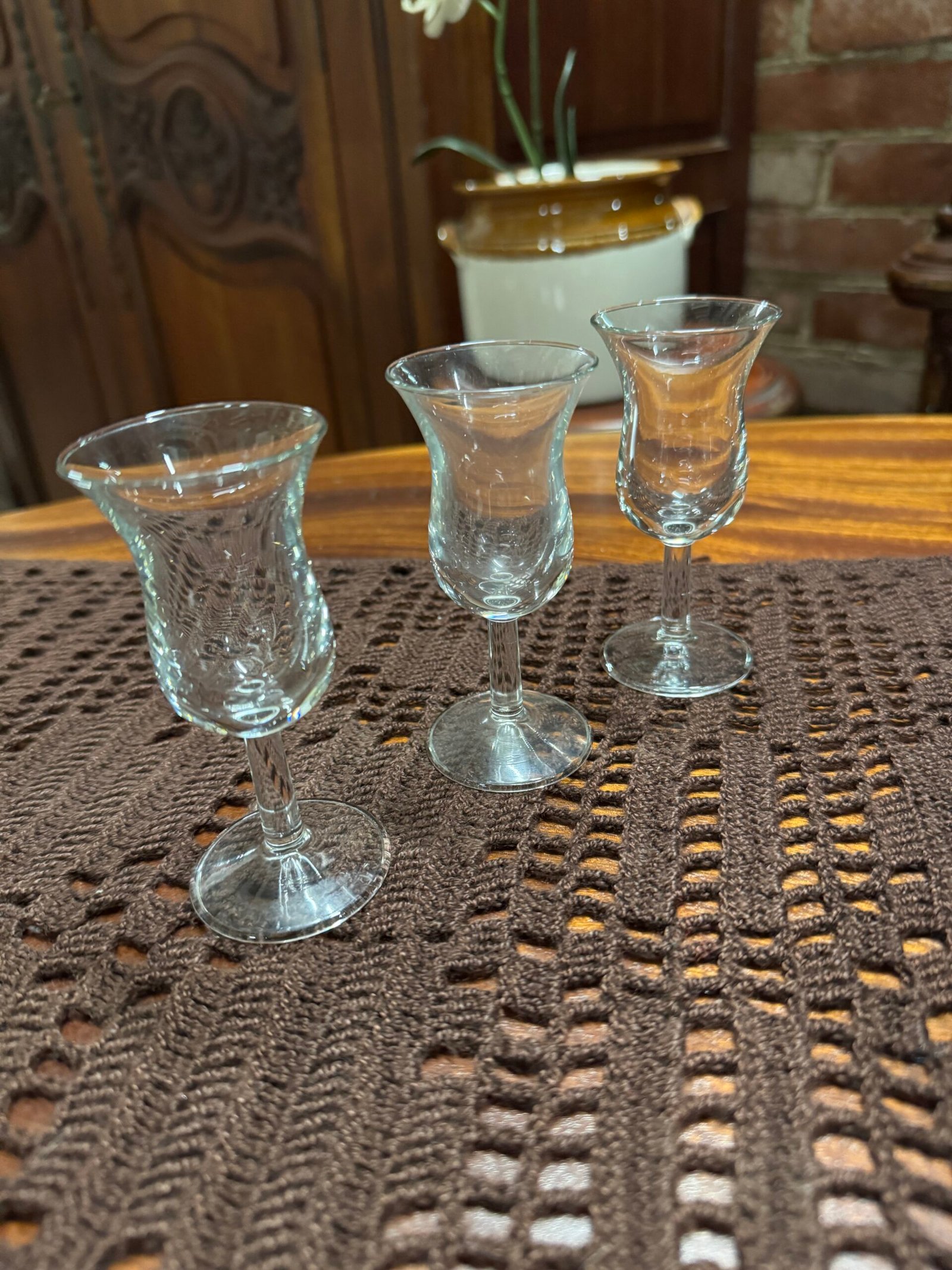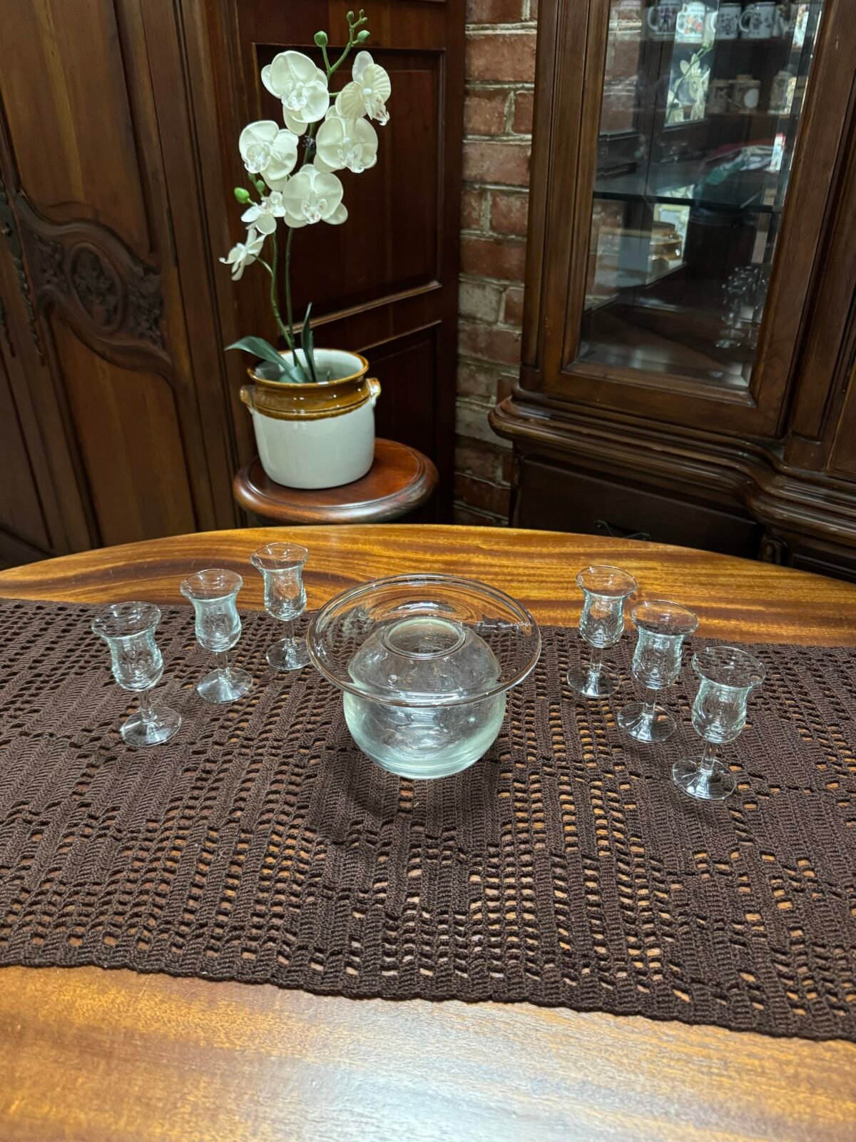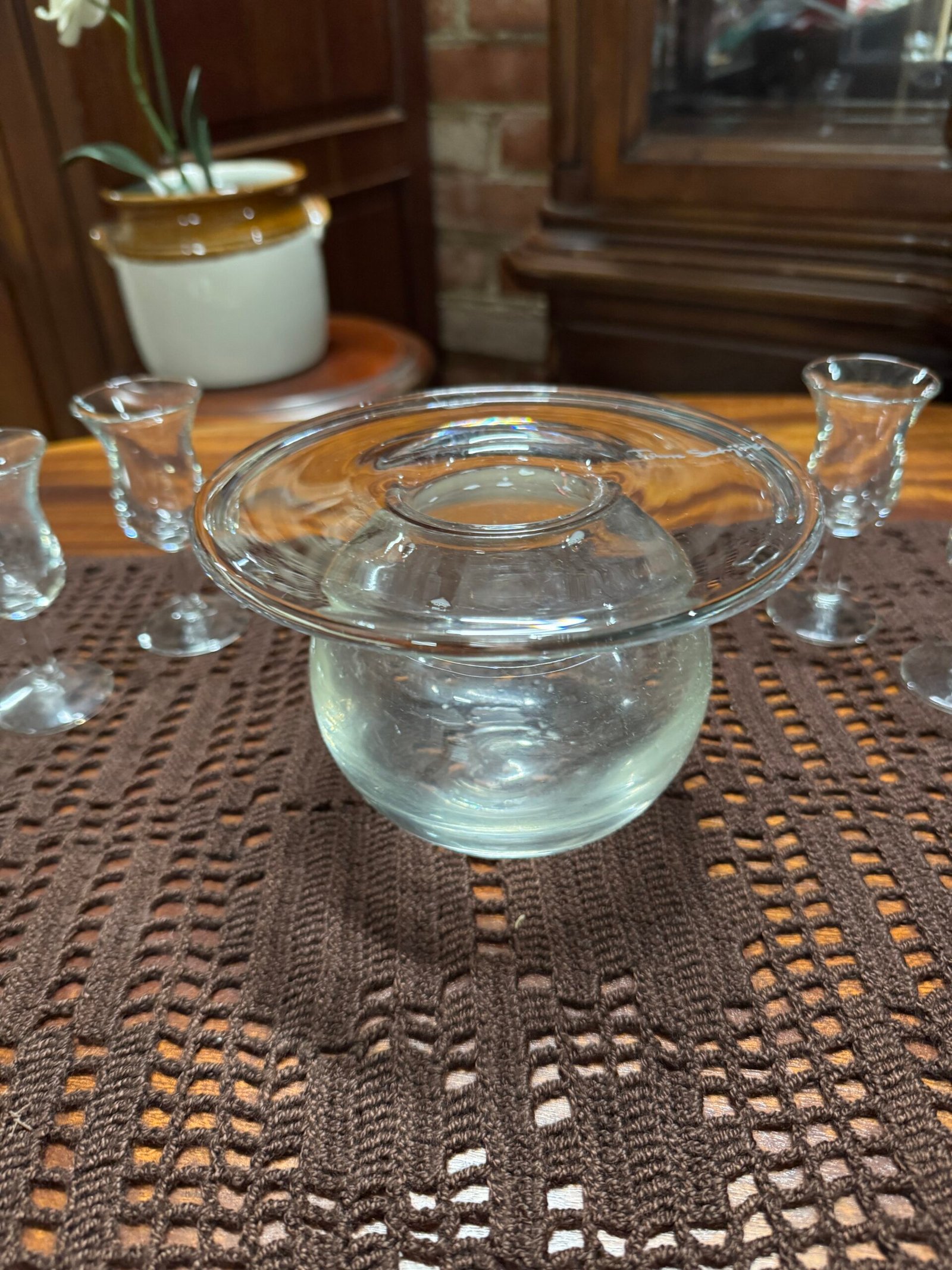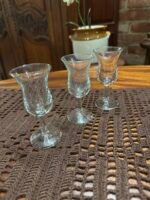 Stiklinė apvali vaza ir tulpės formos nedidelės taurelės