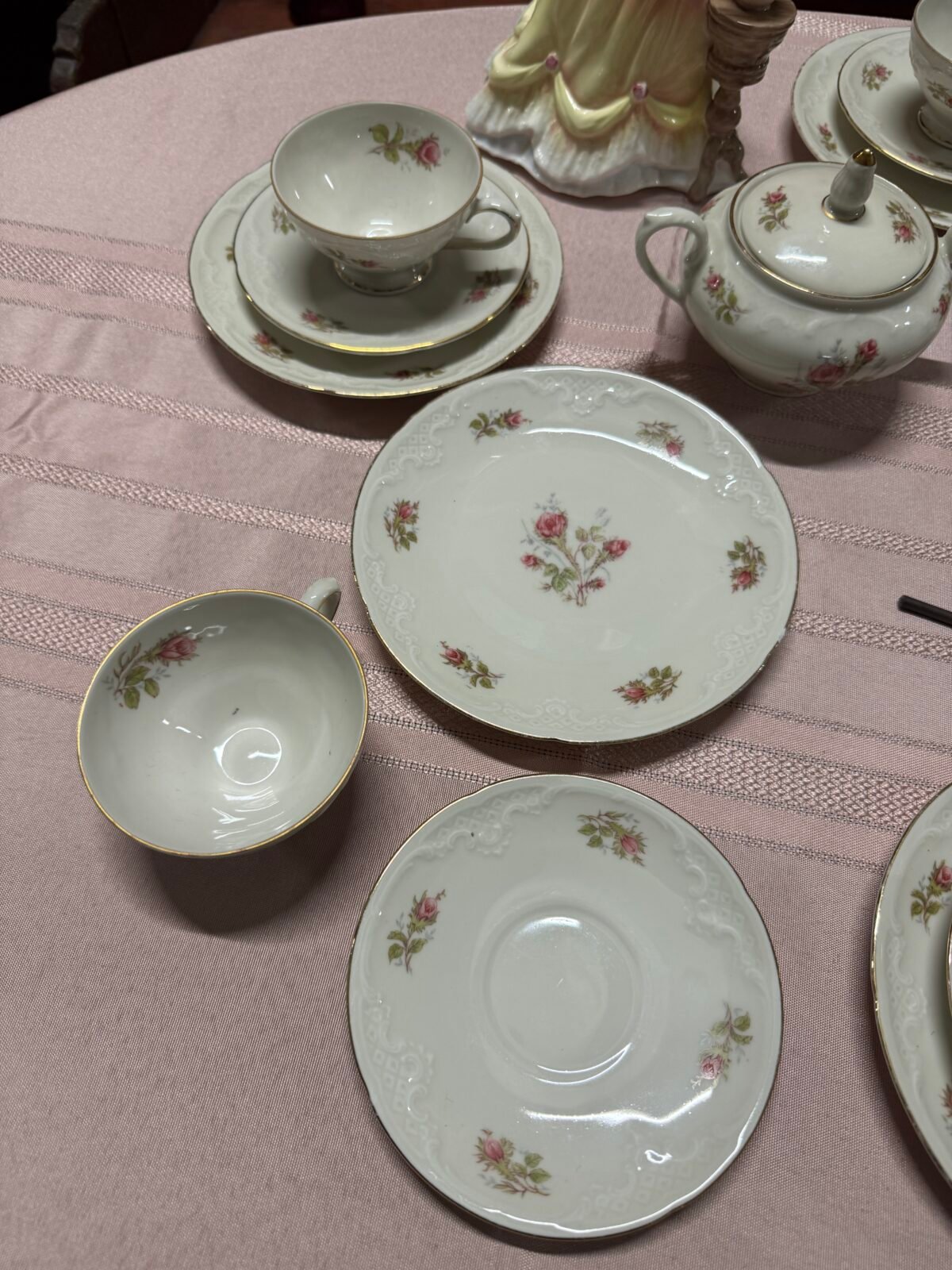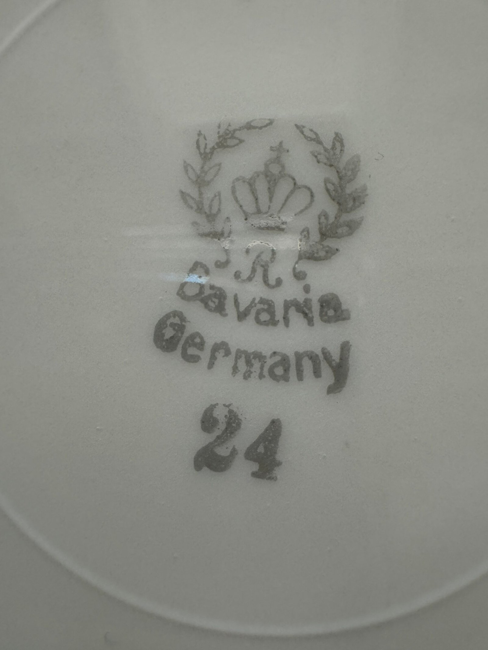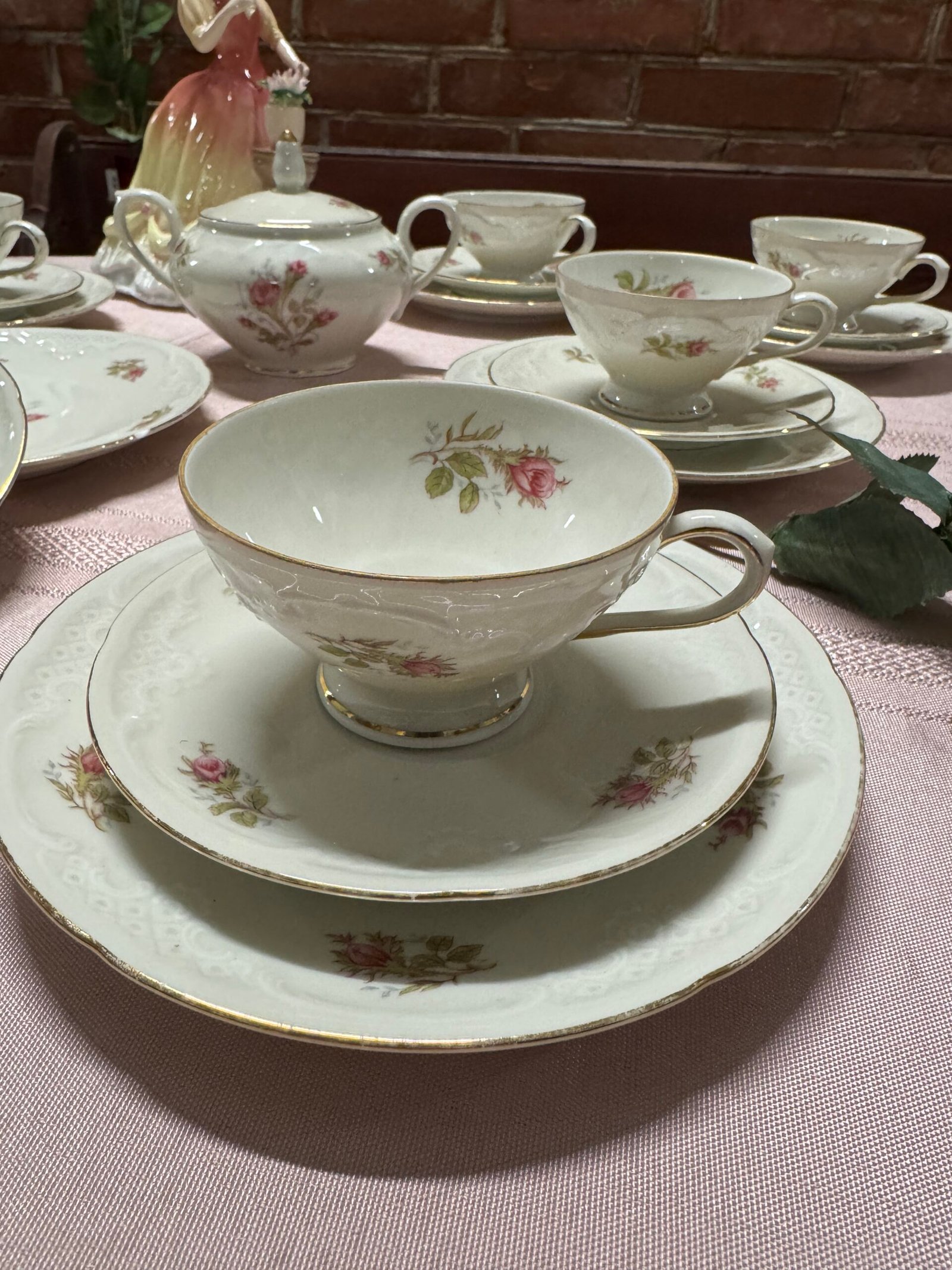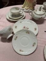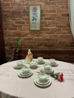 Švelnių spalvų Vokietijos gamintojo porceliano puodukų rinkinys