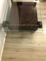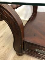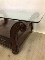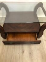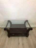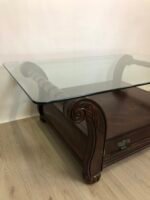 Svetainės staliukas su stalčiuku, lentyna ir stikliniu stalviršiu