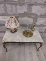 Svetainės staliukas žalvariniu rėmu ir onekso akmens stalviršiu