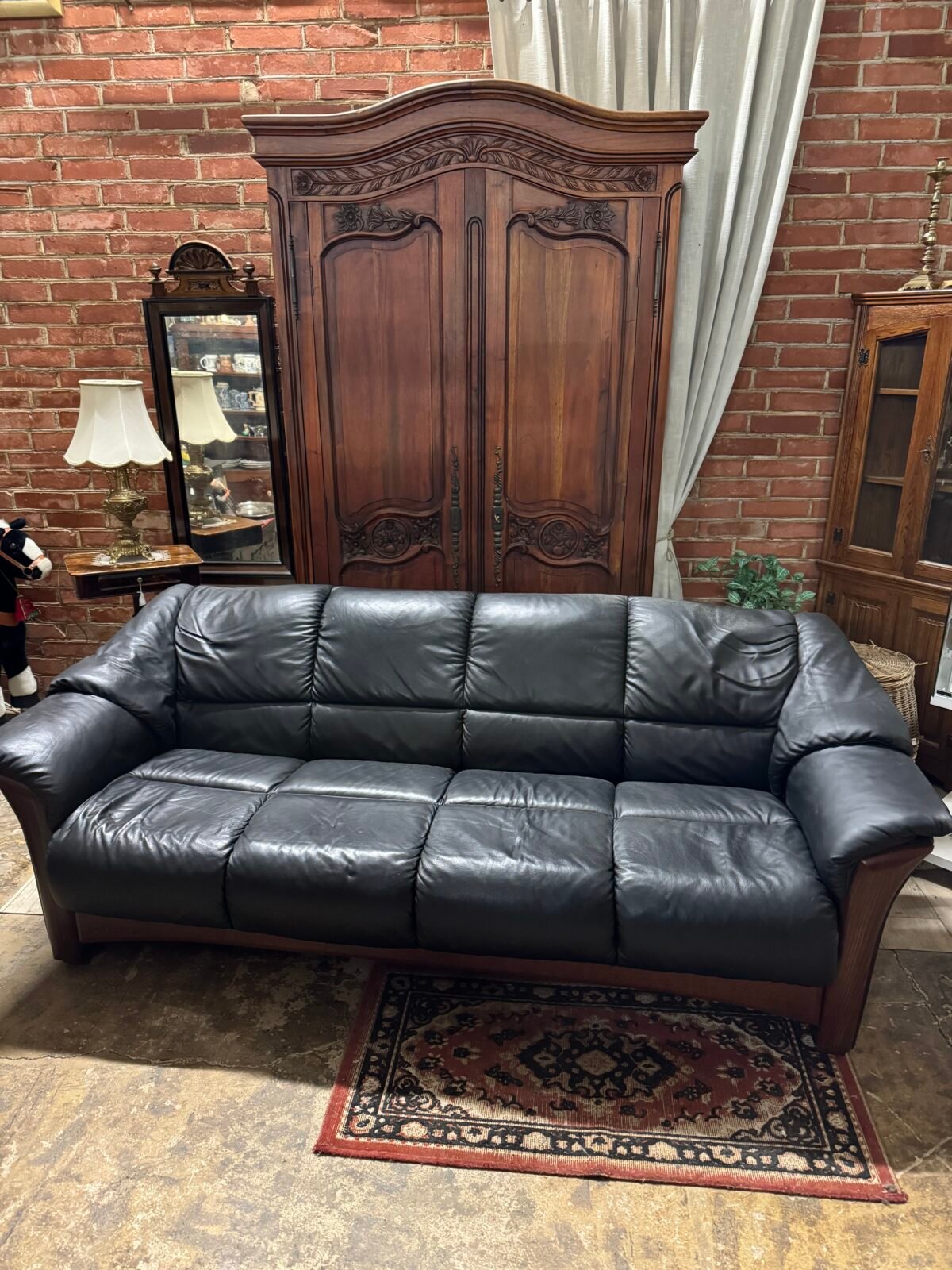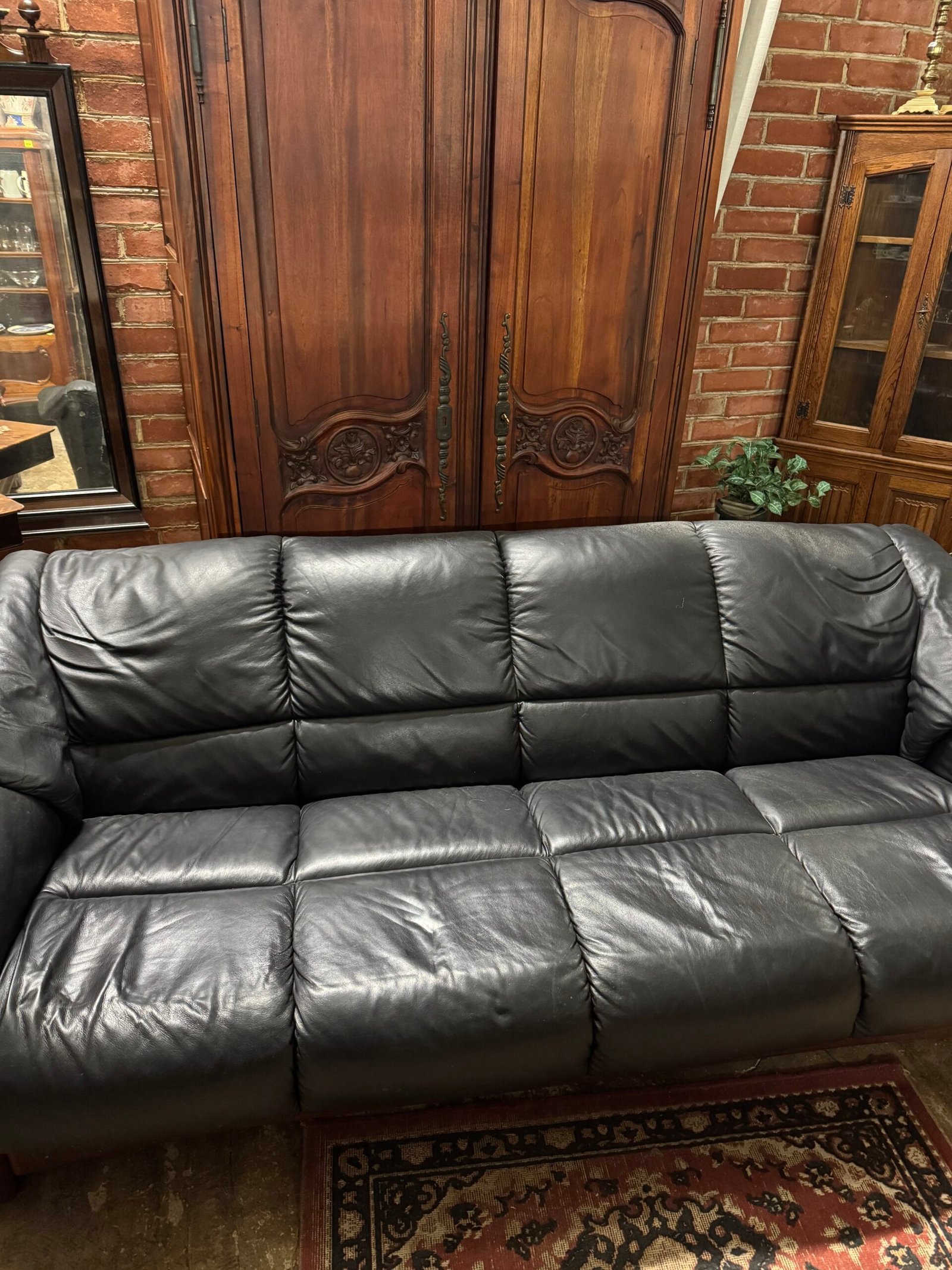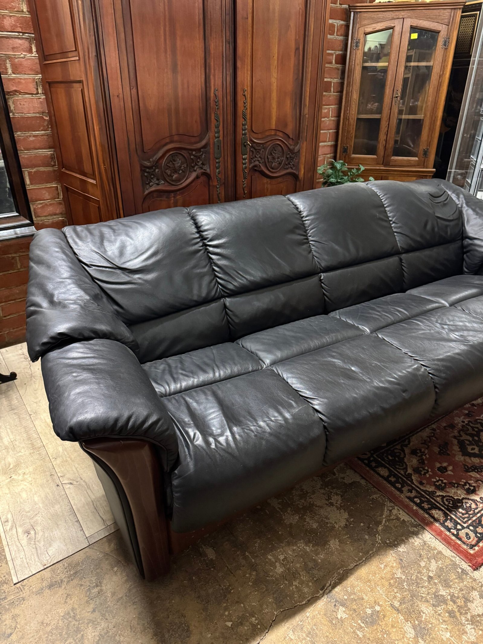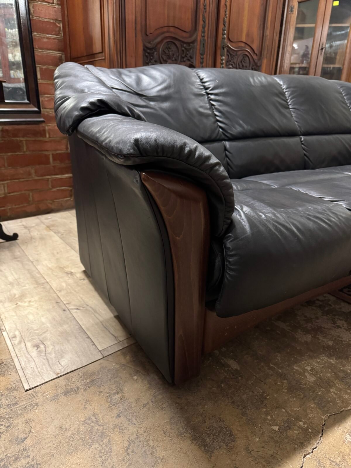 Trivietė odinė kanapa