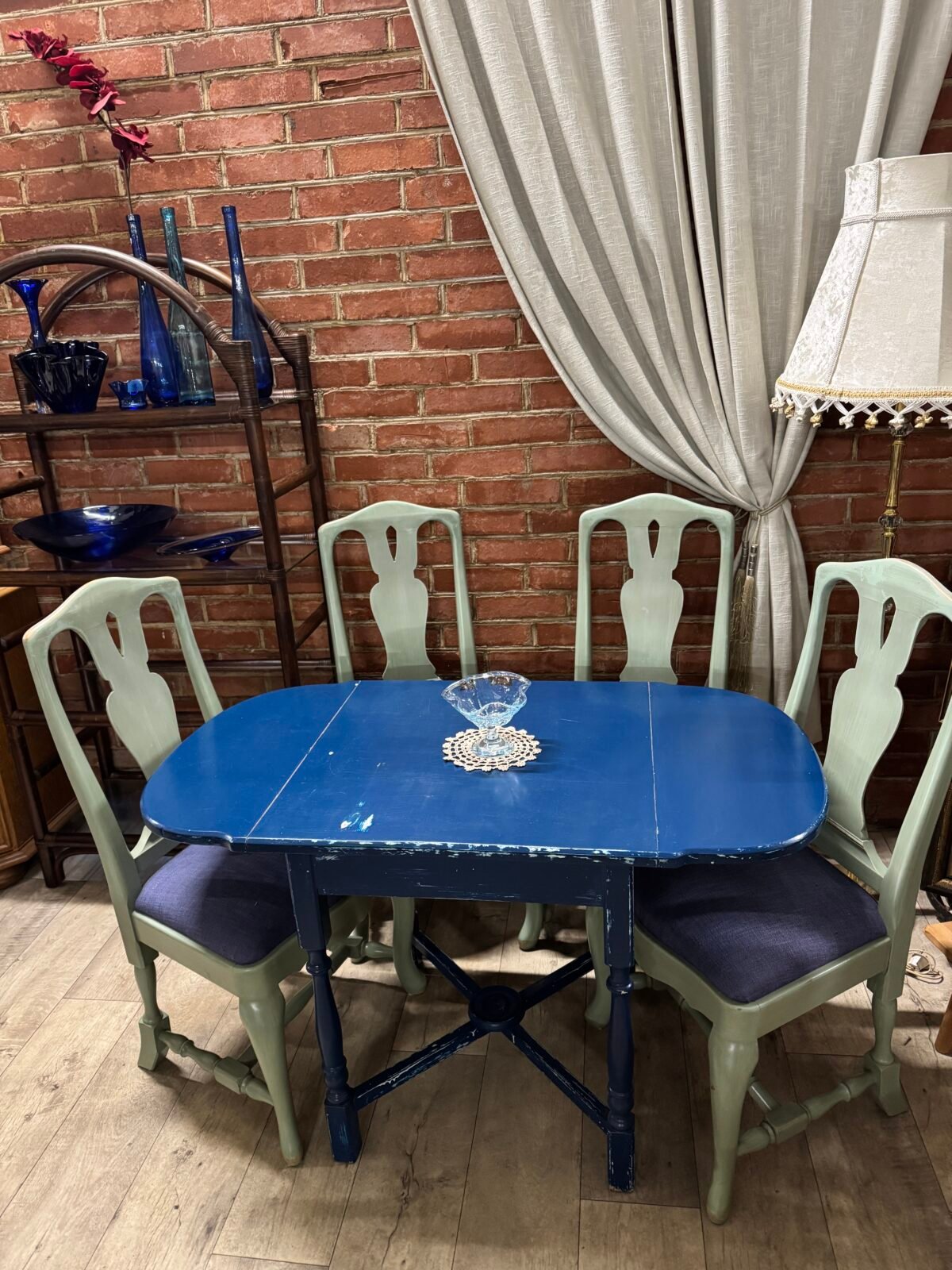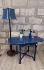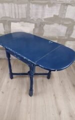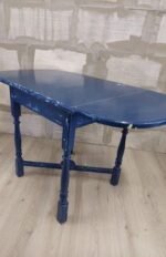 Vintažinis mėlynai dažytas išskleidžiamas valgomojo stalas