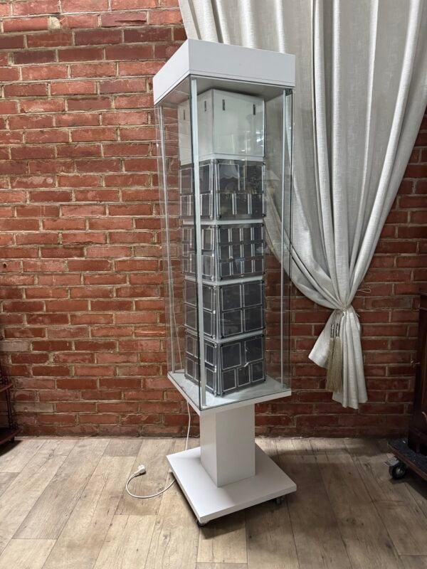 Ekspozicinė šviečianti ir besisukanti reklaminė vitrina
