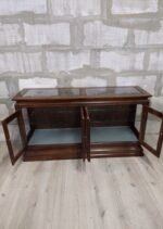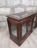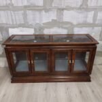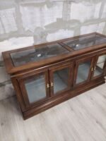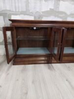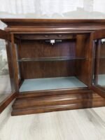 Ąžuolo faneruotės daili vitrina su stalčiukais, lentynom, užsirakinama ir vitražiniais stikliukais