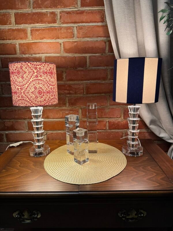 Du vienodi stalo šviestuvai naujai gamintais gaubtais